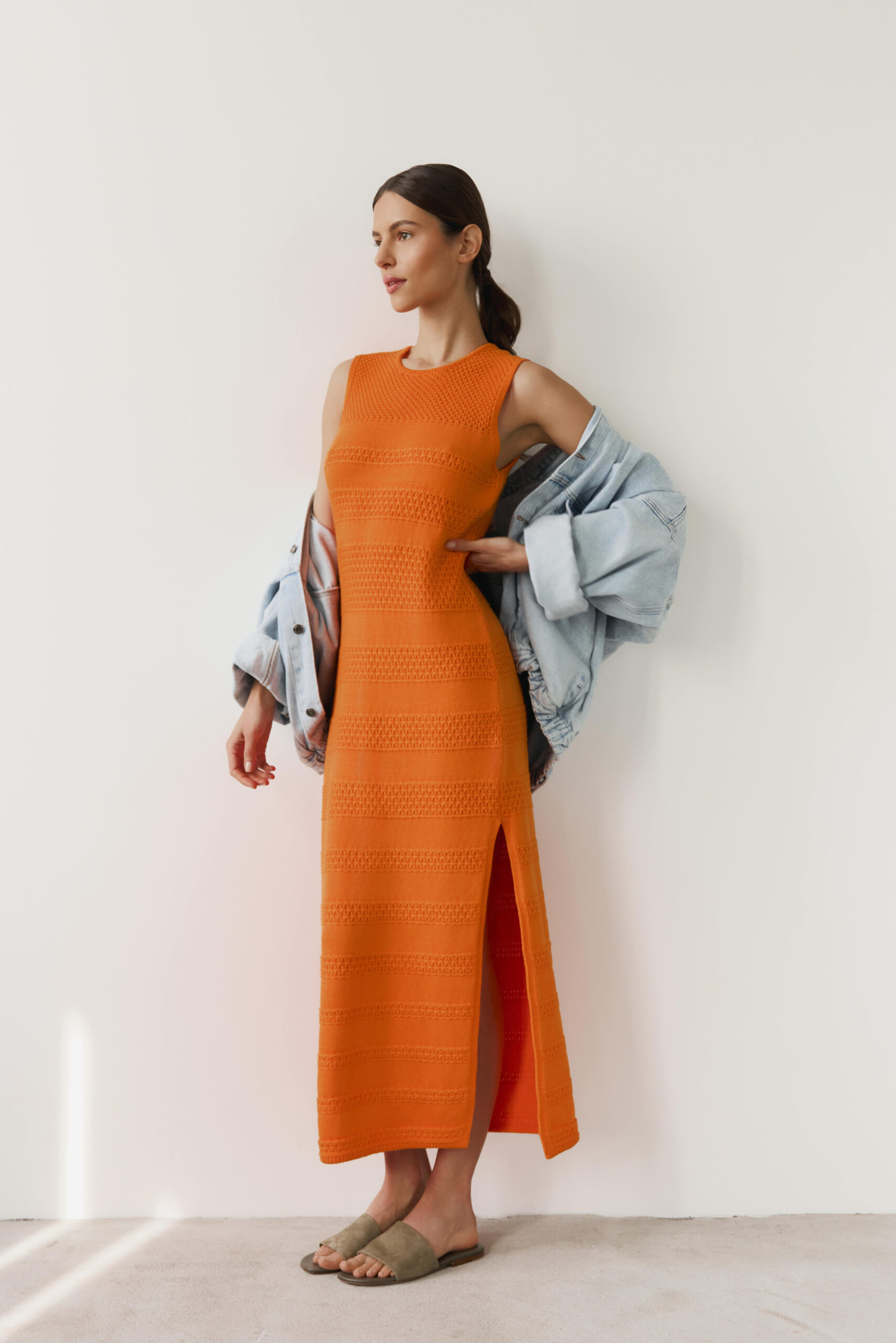 Výstřih je zdoben rypsovým stehem, pod kterým se táhnou pruhy různé tloušťky, které zvýrazňují pas. Ideální na pláž i do horkých dnů ve městě.