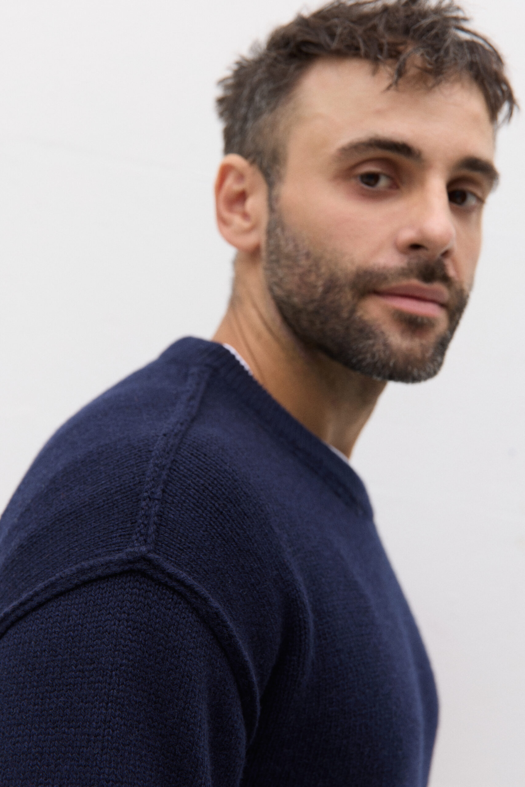 Enzo je klasický střih s diskrétní úpravou. Je tvarově jednoduchý, ale zapamatovatelný díky jednomu detailu: odhalené švy na horní části ramen byly záměrně posunuty směrem ven, čímž vznikl moderní, nenápadný designový akcent.