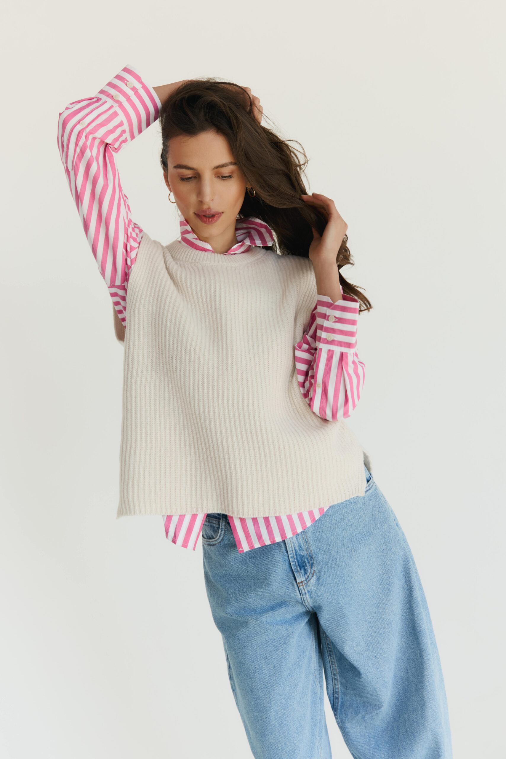 Pro příznivce vypasovanějších bund bez rukávů máme novinku – vestu RETRO. Pletená z lehké a měkké příze 30/70, kašmír/merino. K dostání v klasických krásných barvách: lomená bílá OPACO, klasická červená CREMISI a modrá INDIGO. Kašmírová vesta se vyznačuje neobvyklým stehem, který se jemně liší od klasického „perlového“. Je dokonalou volbou pro jemné a ležérní zvýraznění každodenních stylizací. Skvěle se hodí ke košili, dlouhému rukávu, přes tenké body nebo i v kombinaci se šálou!